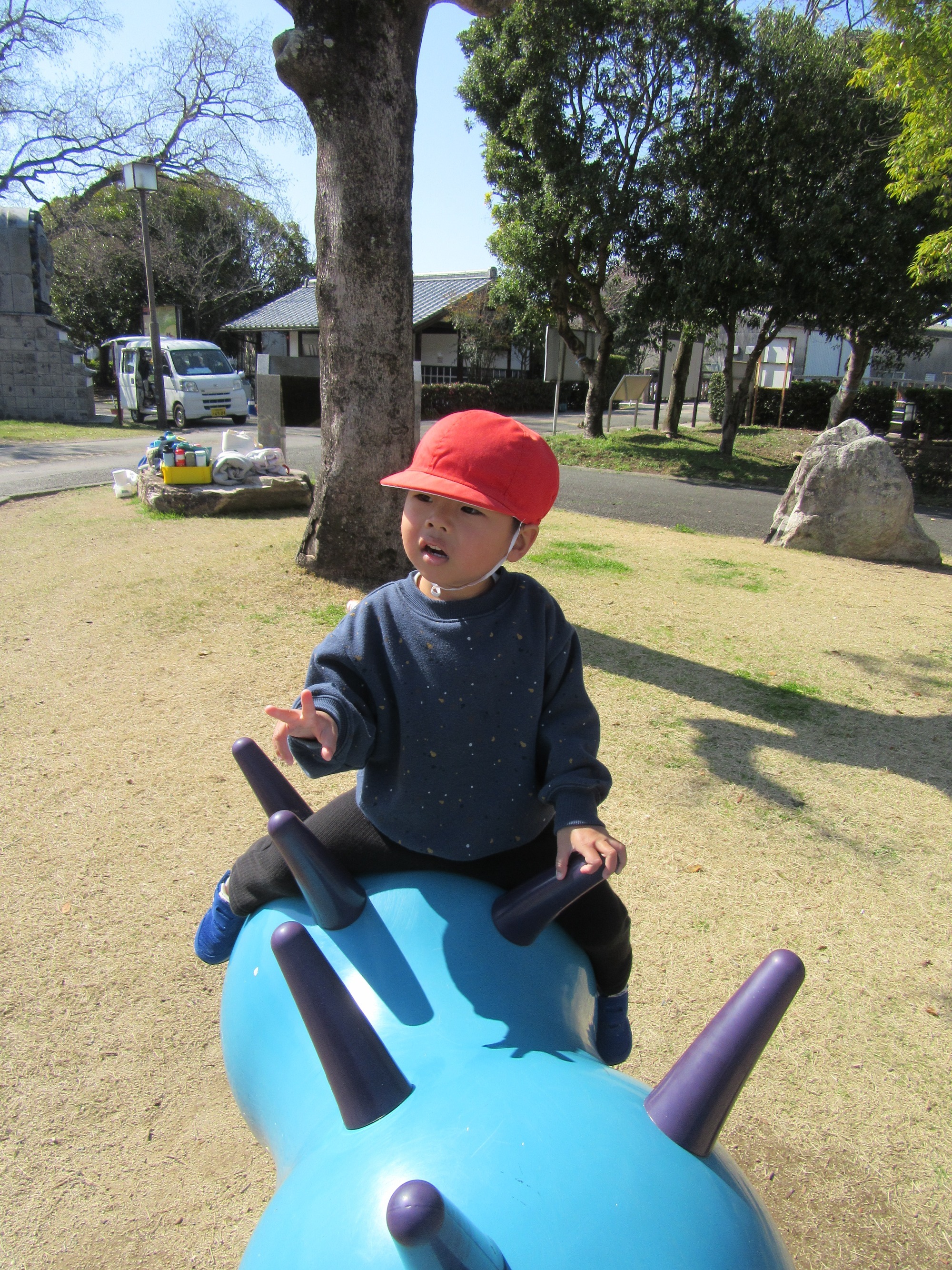 3月は行事が盛りだくさん!お別れ遠足では全園児で城島町民の森へ行き、広い公園でドングリを拾ったり、園にはない遊具で遊んだりして、楽しくすごしました。